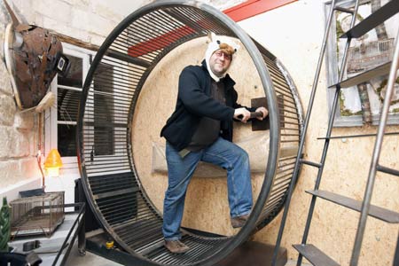 Avete sempre di sognato di poter vivere per un giorno come criceti? Amate moltissimo questi graziosi animaletti e volete dormire dentro una ruota proprio come fanno loro? Bene, da oggi potrete: a Nantes in Francia è stati infatti inaugurato un hotel dove gli ospiti possono sentirsi come..criceti! L’iniziativa parte dall’estro dell’architetto Frédéric Tabary e del suo socio Yann Falquerho, uno scenografo. L’albergo si chiama Villa Hamster che significa Villa Criceto.